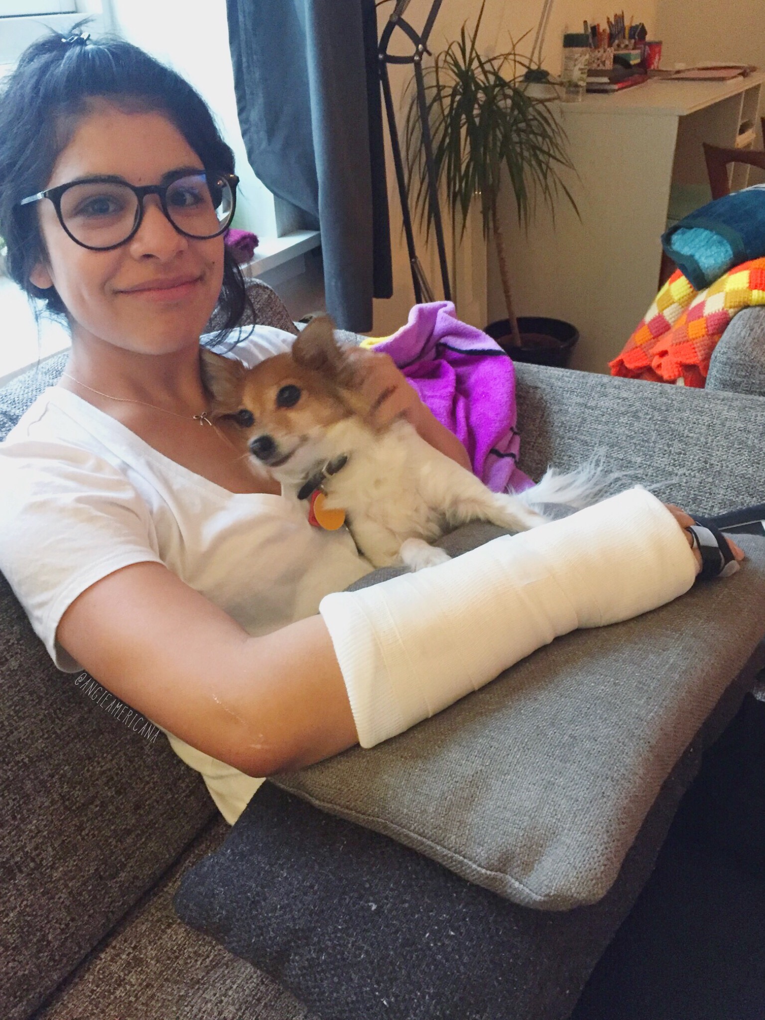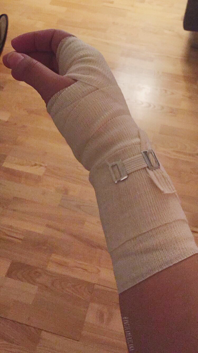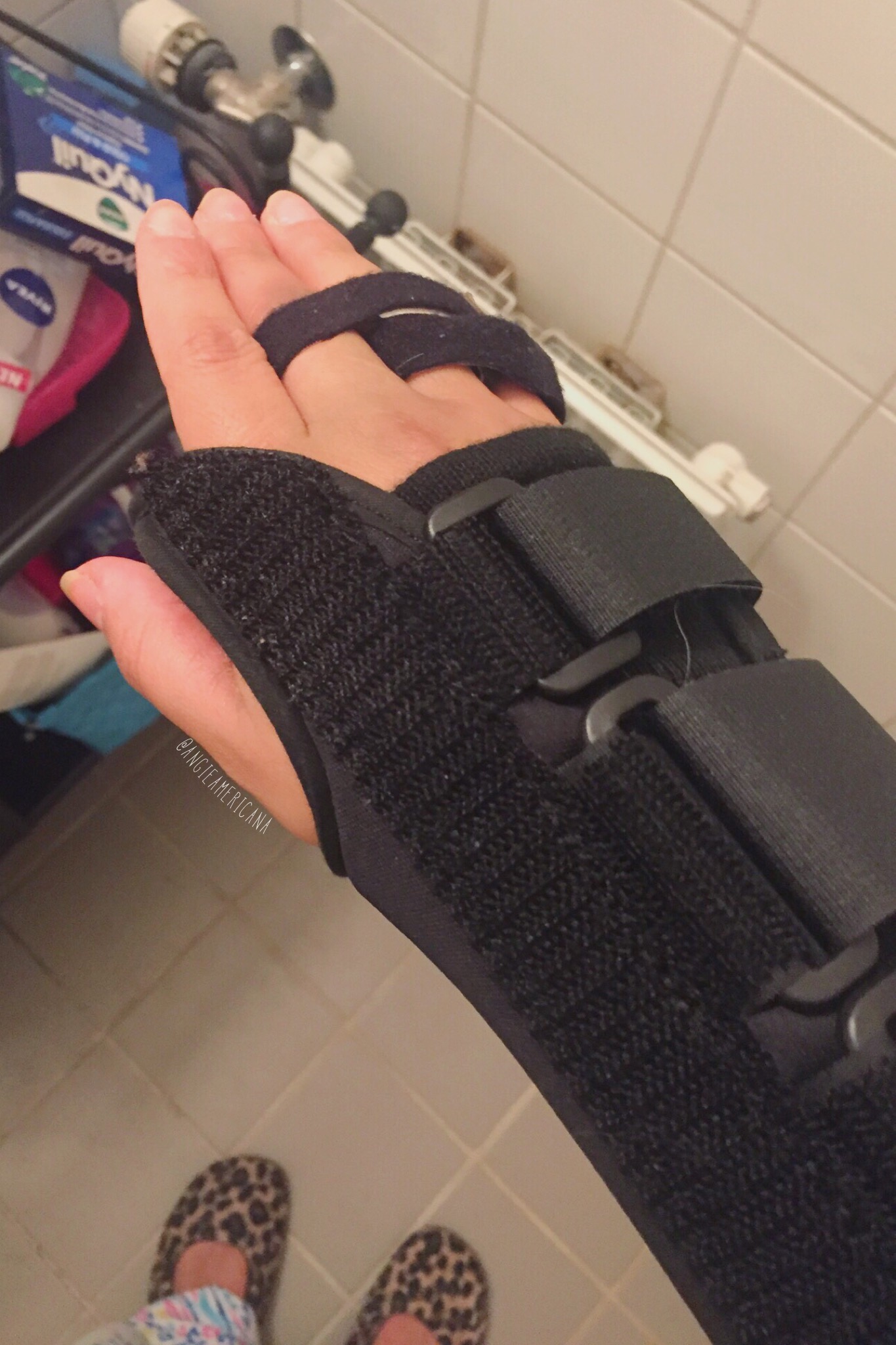 I ended up having to go back to the hospital a week later for some secondary x-rays. The doctor said the fractures were healing nicely and asked me how the cast was feeling. I took this as an opportunity to complain about the size of the cast and discomfort I was feeling because of it. Luckily for me, the doctor cut off my cast and put me in a brace instead! This made me incredibly happy because I get to take it off when I shower instead of shoving my arm into a plastic bag.